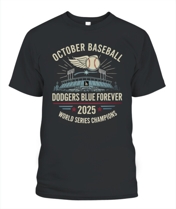 The “October Baseball” Dodgers tee celebrates postseason tradition with a bold crown-and-bats design, honoring LA’s legacy under the lights of October